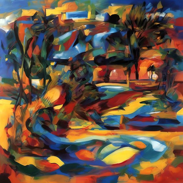 制作者と AI (AI アート作成用のプログラム Stable Diffusion XL 1.0 (1024)) とからなるアートユニット カナブストラクド によるアート画像です.そのプログラムに「Kanabstracd surrealism Gauguin」ということば (prompt) をあたえて創造させました. 負のプロンプトとして「surrealism Gauguin mesh」を指定しています.