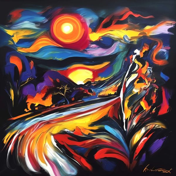 制作者と AI (AI アート作成用のプログラム Stable Diffusion XL 1.0 (1024)) とからなるアートユニット カナブストラクド によるアート画像です.そのプログラムに「Kanabstracd expressionism」ということば (prompt) をあたえて創造させました. 負のプロンプトとして「expressionism coarse_mesh」を指定しています.