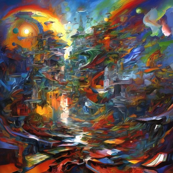 制作者と AI (AI アート作成用のプログラム Stable Diffusion XL 1.0 (1024)) とからなるアートユニット カナブストラクド によるアート画像です.そのプログラムに「Kanabstracd surrealism Af_Clint」ということば (prompt) をあたえて創造させました. 負のプロンプトとして「Af_Clint knots」を指定しています.