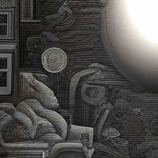 これらの画像は通常の AI アートとはちがう独自の方法を使って作っています. AI アートは AI にプロンプト (または呪文) とよばれる英語の記述をあたえて作画した画像ですが, Stable Diffusion,DALL・E 2,Midjourney などの AI プログラムによって 2022 年に爆発的に普及しました. AI アートで望む画像を作るために通常は比較的細かい指示を与えます. しかしデイシンではおもに 1〜4 語程度の短いことばや造語を Stable Diffusion XL 1.0 (1024) を使用している OpenArt,NightCafe などのウェブサイトで使用して,そのプログラムがもつ知識をいかして自由に (ジェネラティブに,創発的に) 画像をつくらせています. コントラストの調整等はしていますが,描きなおさせたり加筆したりするようなことはしていません.