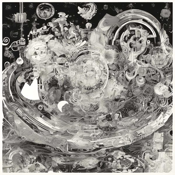 これらの画像は通常の AI アートとはちがう独自の方法を使って作っています. AI アートは AI にプロンプト (または呪文) とよばれる英語の記述をあたえて作画した画像ですが, Stable Diffusion,DALL・E 2,Midjourney などの AI プログラムによって 2022 年に爆発的に普及しました. AI アートで望む画像を作るために通常は比較的細かい指示を与えます. しかしデイシンではおもに 1〜4 語程度の短いことばや造語を Stable Diffusion XL 1.0 (1024) を使用している OpenArt,NightCafe などのウェブサイトで使用して,そのプログラムがもつ知識をいかして自由に (ジェネラティブに,創発的に) 画像をつくらせています. コントラストの調整等はしていますが,描きなおさせたり加筆したりするようなことはしていません.
