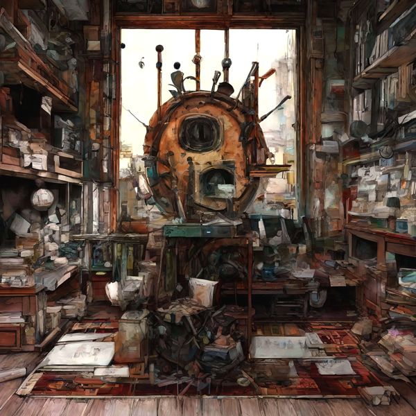これらの画像は通常の AI アートとはちがう独自の方法を使って作っています. AI アートは AI にプロンプト (または呪文) とよばれる英語の記述をあたえて作画した画像ですが, Stable Diffusion,DALL・E 2,Midjourney などの AI プログラムによって 2022 年に爆発的に普及しました. AI アートで望む画像を作るために通常は比較的細かい指示を与えます. しかしデイシンではおもに 1〜4 語程度の短いことばや造語を Stable Diffusion XL 1.0 (1024) を使用している OpenArt,NightCafe などのウェブサイトで使用して,そのプログラムがもつ知識をいかして自由に (ジェネラティブに,創発的に) 画像をつくらせています. コントラストの調整等はしていますが,描きなおさせたり加筆したりするようなことはしていません.