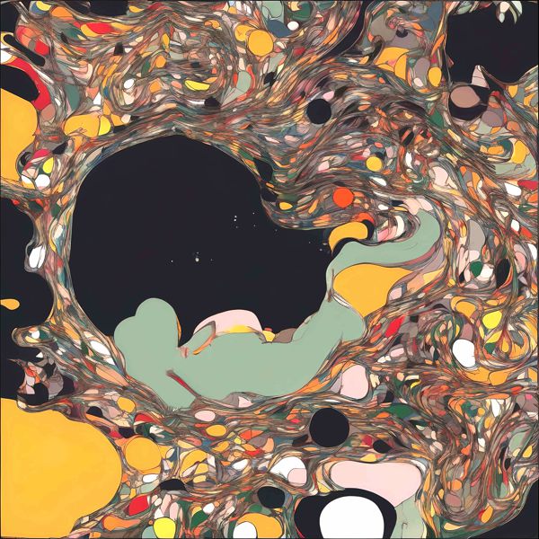 制作者と AI (AI アート作成用のプログラム Stable Diffusion XL 1.0 (1024)) とからなるアートユニット カナブストラクド によるアート画像です.そのプログラムに「Kanabstracd absurdism Pollock」ということば (prompt) をあたえて創造させました. 負のプロンプトとして「Pollock bows」を指定しています.