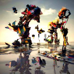 創作者と AI とで構成されるアートユニット「カナブストラクド (Kanabstracd)」による, 3D をテーマとした作品をあつめました.つまり,抽象画を中心に描くカナブストラクドというユニットの名前と “3D” を正のプロンプトにいれて描いています.カナブストラクドという名前をプロンプトとすることは署名のような意味をもちます.AI には著作権がないため,創作者が選んだ上位の作品は創作者の著作権つきのものとかんがえています.