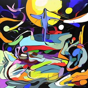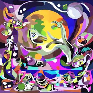AI artwork Kanabstracd “Hieronymus Bosch-Delaunay-esque … without Arrows”