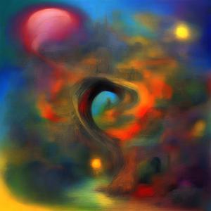 AI artwork Kanabstracd “Chagall-esque Surrealism without Knots”