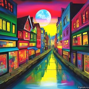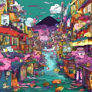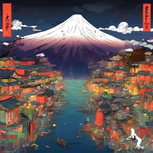 AI artwork Kanabstracd “Hiroshige-esque Cosmocity”