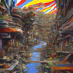 AI artwork Kanabstracd “Hundertwasser-esque ±Surrealism without Arrows”