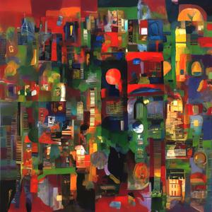 AI artwork Kanabstracd “Hundertwasser-esque Absurd Realism without Circles”
