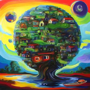 AI artwork Kanabstracd “Hundertwasser-esque Absurd Realism”