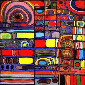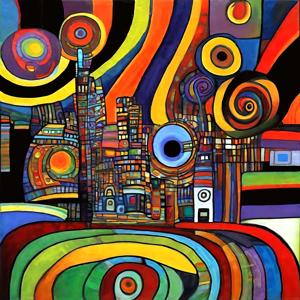 AI artwork Kanabstracd “Hundertwasser-esque … without Hundertwasse”