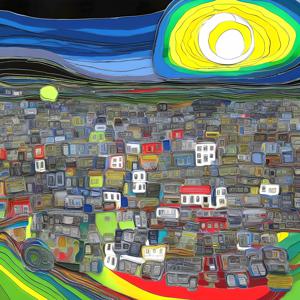 AI artwork Kanabstracd “Hundertwasser-esque Absurd Realism”