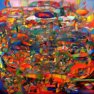 AI artwork Kanabstracd “Hundertwasser-esque Absurd Realism without Checker”