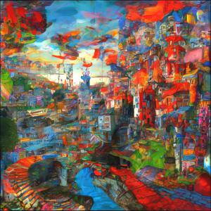 AI artwork Kanabstracd “Hundertwasser-esque Absurd Realism”