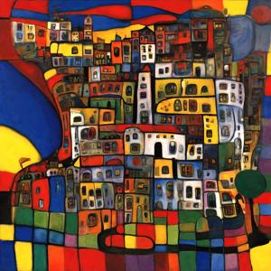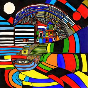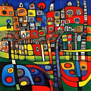AI artwork Kanabstracd “Hundertwasser-esque … without Houses”