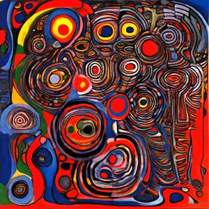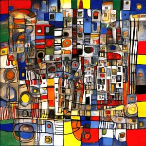 AI artwork Kanabstracd “Hundertwasser-esque … without Circles”