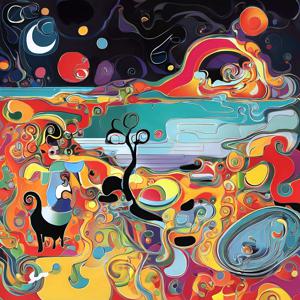 創作者と AI とで構成されるアートユニット「カナブストラクド (Kanabstracd)」がジョアン・ミロから学んで描いた作品をあつめました.つまり,カナブストラクドというアートユニット名とジョアン・ミロとを正のプロンプトにし,場合によってジョアン・ミロを負のプロンプトにいれて描いています.カナブストラクドという名前をプロンプトとすることは署名のような意味をもちます.AI には著作権がないため,創作者が選んだ上位の作品は創作者の著作権つきのものとかんがえています.