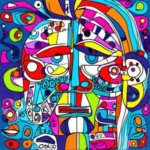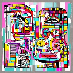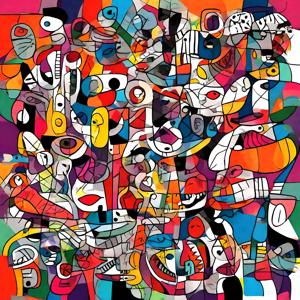 AI artwork Kanabstracd “By Picasso-esque … without Grayscale and Cubisc”