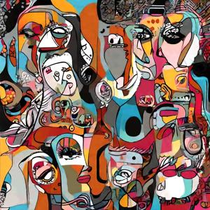創作者と AI とで構成されるアートユニット「カナブストラクド (Kanabstracd)」がピカソ (またはそれに近いつづりの画家) から学んで描いた作品をあつめました.つまり,カナブストラクドというアートユニット名とピカソ (またはそれに近いつづりの画家) とを正のプロンプトにし,場合によってピカソ (またはそれに近いつづりの画家) を負のプロンプトにいれて描いています.カナブストラクドという名前をプロンプトとすることは署名のような意味をもちます.AI には著作権がないため,創作者が選んだ上位の作品は創作者の著作権つきのものとかんがえています.