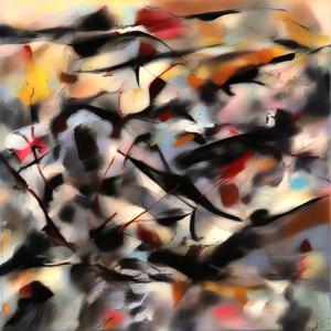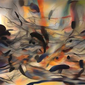 創作者と AI とで構成されるアートユニット「カナブストラクド (Kanabstracd)」がポロックから学んで描いた作品をあつめました.つまり,カナブストラクドというアートユニット名とポロックとを正のプロンプトにし,場合によってポロックを負のプロンプトにいれて描いています.カナブストラクドという名前をプロンプトとすることは署名のような意味をもちます.AI には著作権がないため,創作者が選んだ上位の作品は創作者の著作権つきのものとかんがえています.