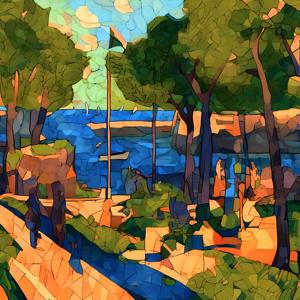 AI artwork Kanabstracd “Seurat-esque Surreal without Grid”