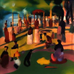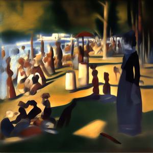 創作者と AI とで構成されるアートユニット「カナブストラクド (Kanabstracd)」がスーラから学んで描いた作品をあつめました.つまり,カナブストラクドというアートユニット名とスーラとを正のプロンプトにし,場合によってスーラを負のプロンプトにいれて描いています.カナブストラクドという名前をプロンプトとすることは署名のような意味をもちます.AI には著作権がないため,創作者が選んだ上位の作品は創作者の著作権つきのものとかんがえています.