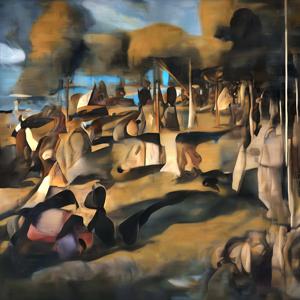 創作者と AI とで構成されるアートユニット「カナブストラクド (Kanabstracd)」がスーラから学んで描いた作品をあつめました.つまり,カナブストラクドというアートユニット名とスーラとを正のプロンプトにし,場合によってスーラを負のプロンプトにいれて描いています.カナブストラクドという名前をプロンプトとすることは署名のような意味をもちます.AI には著作権がないため,創作者が選んだ上位の作品は創作者の著作権つきのものとかんがえています.