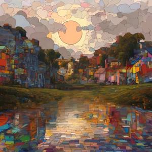 AI artwork Kanabstracd “Seurat-esque Metarealism without Woodgrain”