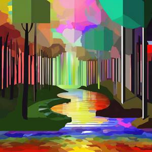 AI artwork Kanabstracd “Seurat-esque Surrealism without Woodgrain”