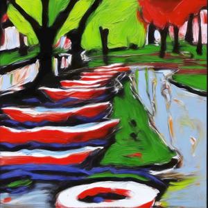 AI artwork Kanabstracd “Seurat-esque Absurd Realism without Woodgrain”