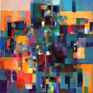 AI artwork Kanabstracd “Vermeer-Delaunay-esque … without Arrows”