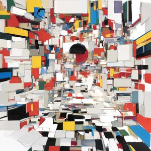 AI artwork Kanabstracd “Mondrian-esque Absurd Realism”