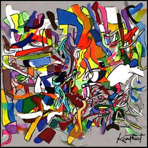 創作者と AI とで構成されるアートユニット「カナブストラクド (Kanabstracd)」による,アルファベットに影響されない作品をあつめました.つまり,抽象画を中心に描くカナブストラクド (Kanabstracd) というつづりを正のプロンプトにし,“A”,“B”,“C” などを負のプロンプトにいれて描いています.カナブストラクドという名前をプロンプトとすることは署名のような意味をもちます.AI には著作権がないため,創作者が選んだ上位の作品は創作者の著作権つきのものとかんがえています.
