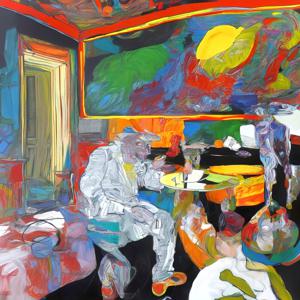 創作者と AI とで構成されるアートユニット「カナブストラクド (Kanabstracd)」による,矢に影響されない作品をあつめました.つまり,抽象画を中心に描くカナブストラクド (Kanabstracd) というつづりを正のプロンプトにし,“arrows”を負のプロンプトにいれて描いています.カナブストラクドという名前をプロンプトとすることは署名のような意味をもちます.AI には著作権がないため,創作者が選んだ上位の作品は創作者の著作権つきのものとかんがえています.