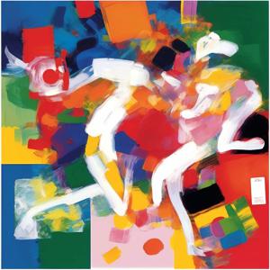 AI artwork Kanabstracd “Gerhard Richter-Miro-esque … without Barbeds”