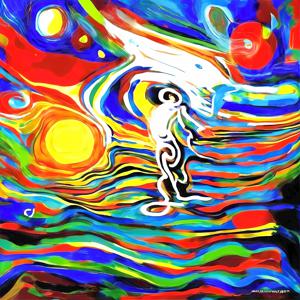 創作者と AI とで構成されるアートユニット「カナブストラクド (Kanabstracd)」による,弓に影響されない作品をあつめました.つまり,抽象画を中心に描くカナブストラクド (Kanabstracd) というつづりを正のプロンプトにし,“bow(s)”を負のプロンプトにいれて描いています.カナブストラクドという名前をプロンプトとすることは署名のような意味をもちます.AI には著作権がないため,創作者が選んだ上位の作品は創作者の著作権つきのものとかんがえています.