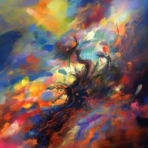 AI artwork Kanabstracd “Karel Appel-esque ±Surrealism without Checker”