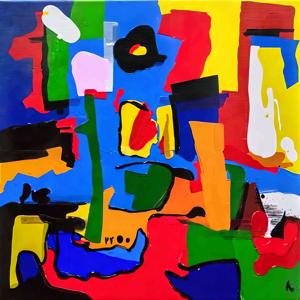 創作者と AI とで構成されるアートユニット「カナブストラクド (Kanabstracd)」による,市松模様に影響されない作品をあつめました.つまり,抽象画を中心に描くカナブストラクド (Kanabstracd) というつづりを正のプロンプトにし,“checker”を負のプロンプトにいれて描いています.カナブストラクドという名前をプロンプトとすることは署名のような意味をもちます.AI には著作権がないため,創作者が選んだ上位の作品は創作者の著作権つきのものとかんがえています.