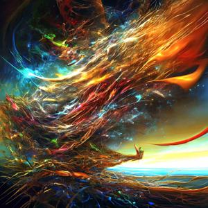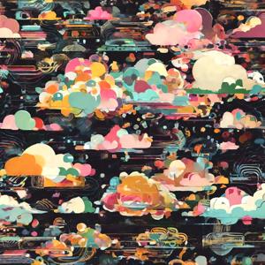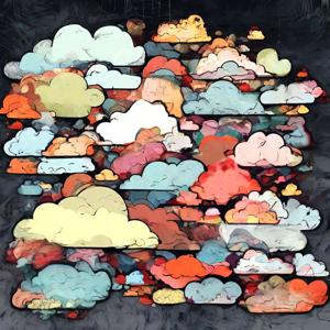 創作者と AI とで構成されるアートユニット「カナブストラクド (Kanabstracd)」による,雲・天候をテーマとした作品をあつめました.つまり,抽象画を中心に描くカナブストラクドというユニットの名前と雲 (cloud),雷 などを正のプロンプトにいれて描いています.カナブストラクドという名前をプロンプトとすることは署名のような意味をもちます.AI には著作権がないため,創作者が選んだ上位の作品は創作者の著作権つきのものとかんがえています.