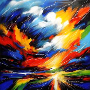 創作者と AI とで構成されるアートユニット「カナブストラクド (Kanabstracd)」による,雲・天候をテーマとした作品をあつめました.つまり,抽象画を中心に描くカナブストラクドというユニットの名前と雲 (cloud),雷 などを正のプロンプトにいれて描いています.カナブストラクドという名前をプロンプトとすることは署名のような意味をもちます.AI には著作権がないため,創作者が選んだ上位の作品は創作者の著作権つきのものとかんがえています.