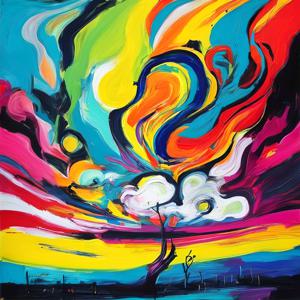 創作者と AI とで構成されるアートユニット「カナブストラクド (Kanabstracd)」による,雲・天候をテーマとした作品をあつめました.つまり,抽象画を中心に描くカナブストラクドというユニットの名前と雲 (cloud),雷 などを正のプロンプトにいれて描いています.カナブストラクドという名前をプロンプトとすることは署名のような意味をもちます.AI には著作権がないため,創作者が選んだ上位の作品は創作者の著作権つきのものとかんがえています.