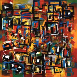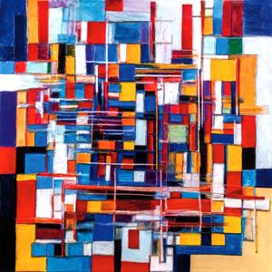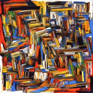 創作者と AI とで構成されるアートユニット「カナブストラクド (Kanabstracd)」による,織物パターンに影響されない作品をあつめました.つまり,抽象画を中心に描くカナブストラクド (Kanabstracd) というつづりを正のプロンプトにし,織物 (fabric) などを負のプロンプトにいれて描いています.カナブストラクドという名前をプロンプトとすることは署名のような意味をもちます.AI には著作権がないため,創作者が選んだ上位の作品は創作者の著作権つきのものとかんがえています.