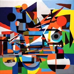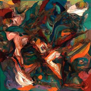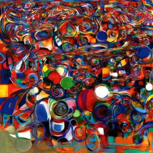 創作者と AI とで構成されるアートユニット「カナブストラクド (Kanabstracd)」による,織物パターンに影響されない作品をあつめました.つまり,抽象画を中心に描くカナブストラクド (Kanabstracd) というつづりを正のプロンプトにし,織物 (fabric) などを負のプロンプトにいれて描いています.カナブストラクドという名前をプロンプトとすることは署名のような意味をもちます.AI には著作権がないため,創作者が選んだ上位の作品は創作者の著作権つきのものとかんがえています.