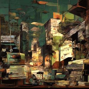 創作者と AI とで構成されるアートユニット「カナブストラクド (Kanabstracd)」による,織物パターンに影響されない作品をあつめました.つまり,抽象画を中心に描くカナブストラクド (Kanabstracd) というつづりを正のプロンプトにし,織物 (fabric) などを負のプロンプトにいれて描いています.カナブストラクドという名前をプロンプトとすることは署名のような意味をもちます.AI には著作権がないため,創作者が選んだ上位の作品は創作者の著作権つきのものとかんがえています.