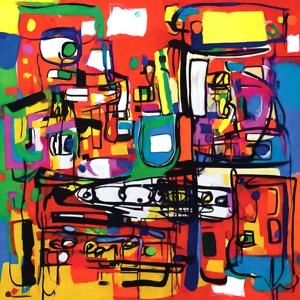 創作者と AI とで構成されるアートユニット「カナブストラクド (Kanabstracd)」による,織物パターンに影響されない作品をあつめました.つまり,抽象画を中心に描くカナブストラクド (Kanabstracd) というつづりを正のプロンプトにし,織物 (fabric) などを負のプロンプトにいれて描いています.カナブストラクドという名前をプロンプトとすることは署名のような意味をもちます.AI には著作権がないため,創作者が選んだ上位の作品は創作者の著作権つきのものとかんがえています.