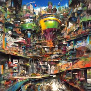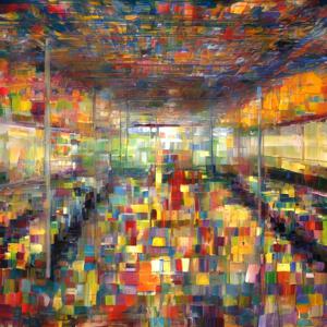 創作者と AI とで構成されるアートユニット「カナブストラクド (Kanabstracd)」による,結び目に影響されない作品をあつめました.つまり,抽象画を中心に描くカナブストラクド (Kanabstracd) というつづりを正のプロンプトにし,“knots”を負のプロンプトにいれて描いています.カナブストラクドという名前をプロンプトとすることは署名のような意味をもちます.AI には著作権がないため,創作者が選んだ上位の作品は創作者の著作権つきのものとかんがえています.