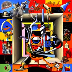 創作者と AI とで構成されるアートユニット「カナブストラクド (Kanabstracd)」による,さまざまなテーマをテーマとした作品をあつめました.つまり,抽象画を中心に描くカナブストラクドというユニットの名前と “3D”,“4D”,シュールリアリズムなどを正のプロンプトにいれて描いています.カナブストラクドという名前をプロンプトとすることは署名のような意味をもちます.AI には著作権がないため,創作者が選んだ上位の作品は創作者の著作権つきのものとかんがえています.