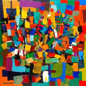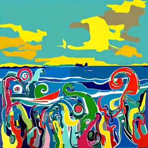 Artworks created by the art unit “Kanabstracd,” which consists of the creator and the AI, and which excludes the influence of {pattern} are collected. That is, they were created using the art unit name, “Kanabstracd,” as the positive prompt, and “wave” or a similar word was put in the negative prompt. The producer considers these as copyrighted works created in collaboration with AI.