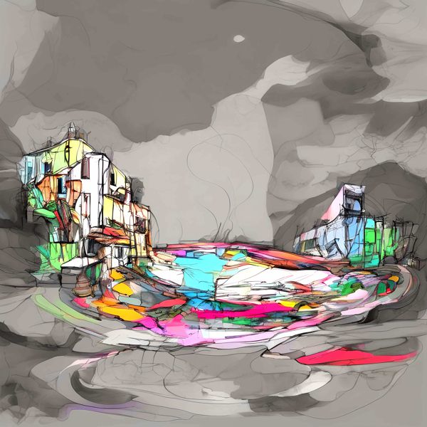 制作者と AI (AI アート作成用のプログラム Stable Diffusion XL 1.0 (1024)) とからなるアートユニット カナブストラクド によるアート画像です.そのプログラムに「Kanabstracd surrealism Af_Clint」ということば (prompt) をあたえて創造させました. 負のプロンプトとして「surrealism Af_Clint」を指定しています.