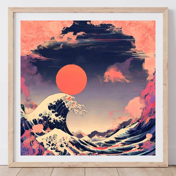 In AI art, the images generated are usually quite rough—about the size of an A6 print (roughly 500–1000 pixels on each side). To make them suitable for presentation, I use a technique called super-resolution, which increases the resolution 4–8 times higher than the original, adding finer detail. However, please note that the resolution of the product image shown above is about the same as the original and has not been upscaled.